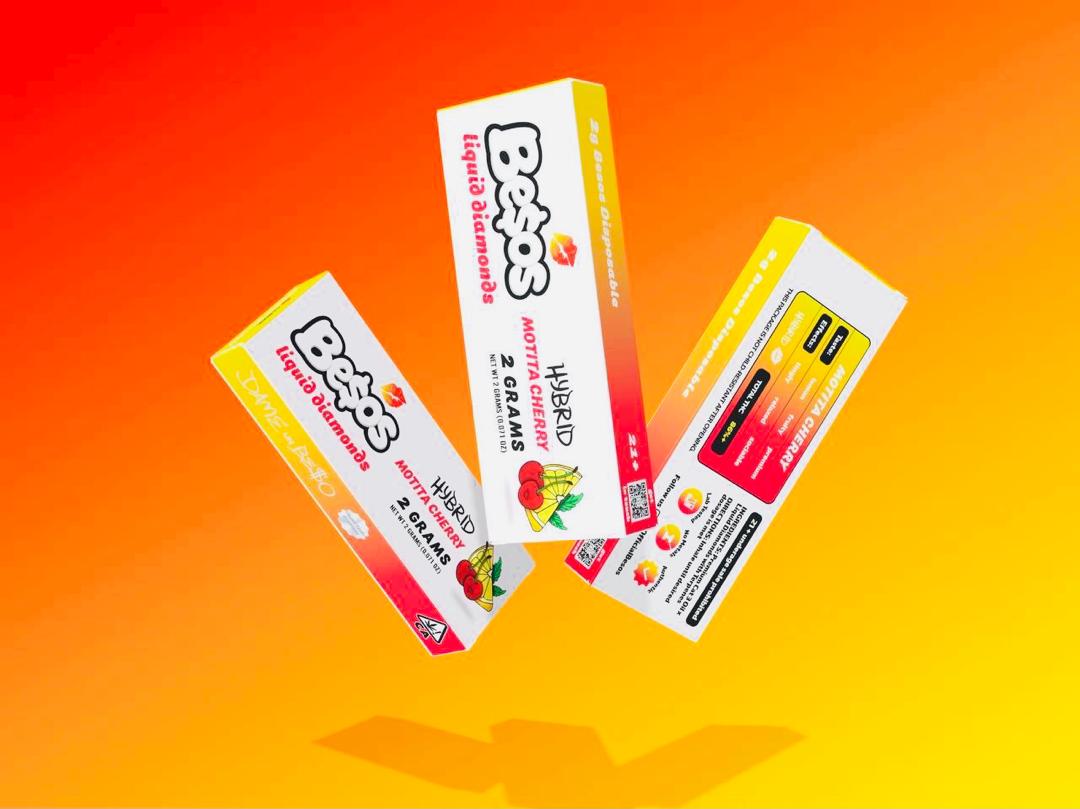 Besos Motita Cherry Disposable flavor (HYBRID) Be$os products are a popular choice today, Besos disposable are easy-to-use and it is ready to vape straight out of the box. The purest form of cannabis on the planet. Besos liquid diamonds are created when live resin is extracted from fresh frozen flower. We liquidated these little crystal gems of terp bathed THC and put them in a pen Every puff is like a little dab of pure THC, Made with great care in Southern California. Besos disposable motita cherry is inhale, lightweight activated and pre-fille d with terpenes and cannabinoids that can give up to 600 puffs of flavor, without charging or maintenance premium cat 3 oil x liquid diamonds with terpenes